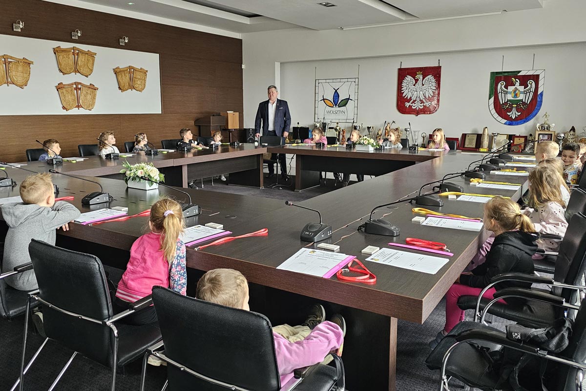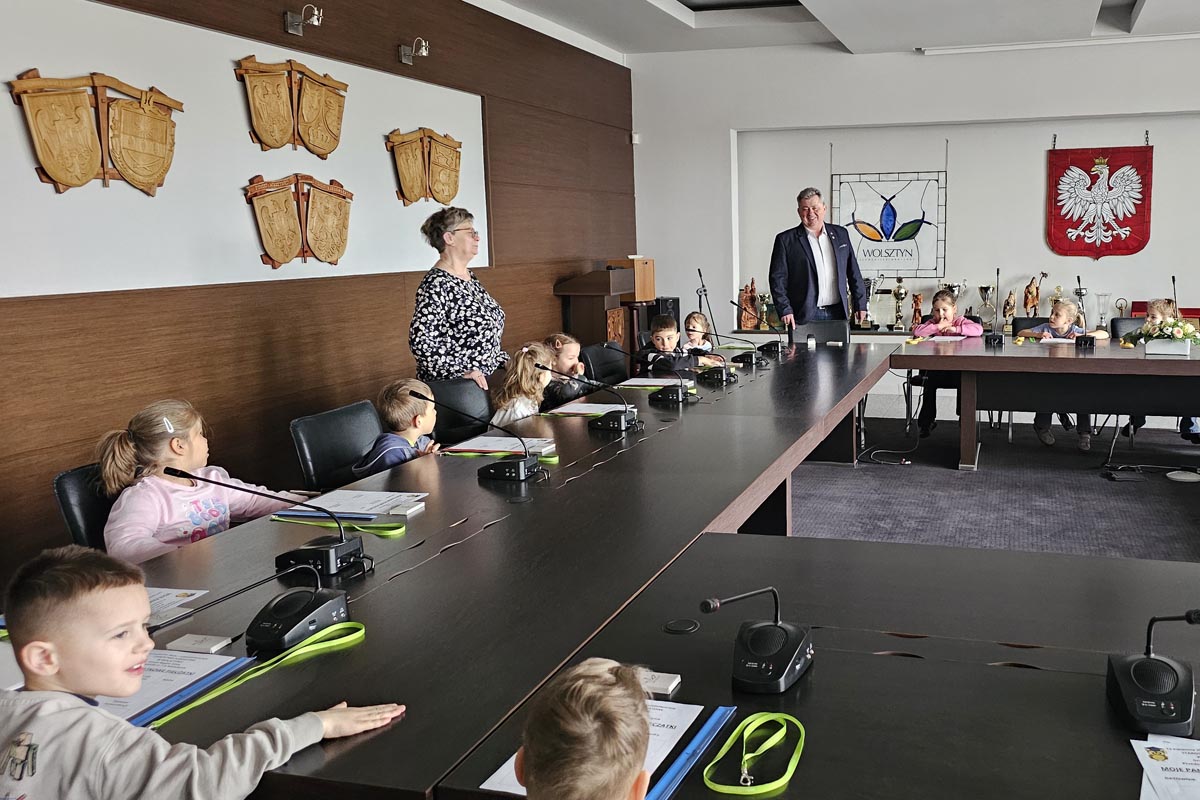 W poniedziałek (13.04) Starostwo Powiatowe w Wolsztynie odwiedziły dzieci z grupy Mądre Sowy z Przedszkola nr 1 „Tęczowa Lokomotywa”. Spotkanie rozpoczął starosta Jacek Skrobisz w sali sesyjnej, gdzie najmłodsi goście poznali podstawowe informacje o powiecie. Dowiedziały się, jak wygląda herb i logo, kim są partnerzy samorządu w Polsce i za granicą oraz na czym polega praca radnych i urzędników.